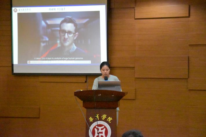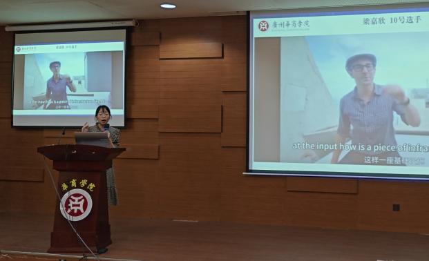 General Secretary Xi Jinping emphasized during the 11th collective study session of the Political Bureau of the Communist Party of China Central Committee the need to accelerate the development of new quality productive forces and solidly promote high-quality development. In order to help college students understand the connotation, development, and influence of new quality productivity, tell the story of China's development of new quality productivity in English. Since April 2024, the International College of Guangzhou Huashang College, in conjunction with the International Exchange and Cooperation Office, has organized the second English dubbing competition“Focus on New Quality Productive Force, Assist High-Quality Development”. Through the preparation of dubbing videos by contestants and preliminary selection, the final was held on May 28, 2024 in the Academic Lecture Hall of the Guangzhou Campus Library. Wang Wenzhong, Director of the International Exchange and Cooperation Department, Hui Yanyan, Dean of the International School, Du Xiujun, Vice Dean of Foreign Languagesthe School of , Yang Lijun, Secretary of the Party Branch of the International College, Dr. Frank Larbi, a Ghanaian teacher, Dr. Aneela Qadir, a Pakistani teacher, and more than 120 college students from the InternationalSchool, Foreign LanguagesSchool , LiteratureSchool, Health and MedicineSchool ,Management School , Artificial IntelligenceSchool , Economics and TradeSchool , andTeacher Education School attended the finals on site.
