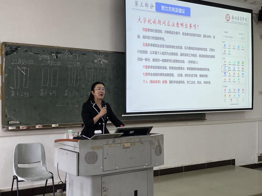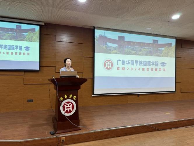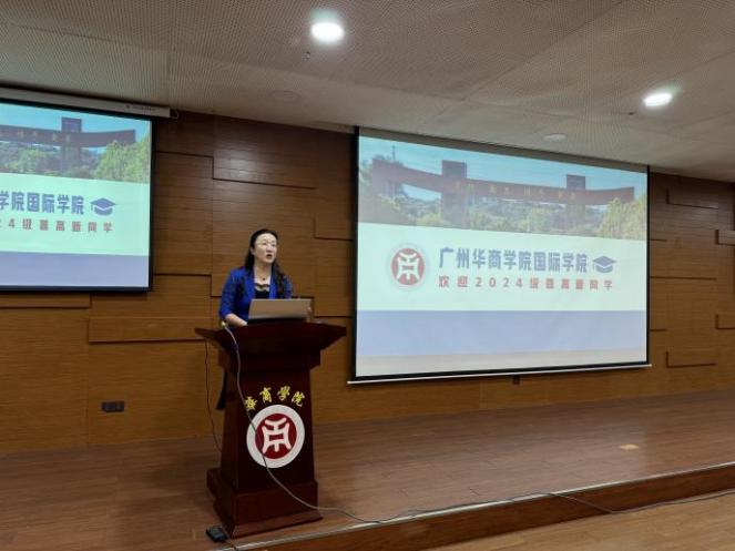On September 11 and September 24, 2024, the International School of Guangzhou Huashang College conducted two freshman orientation sessions—one for 2024 undergraduate students and another for 2022 junior-to-senior transfer students—at the Library Auditorium and Lizhi Building B503, respectively. Led by Dean Hui Yanyan, the sessions were moderated by Freshman Counselor Hao Zixiu and Student Affairs Director Guan Huihui.