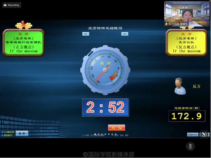 According to the judges’ scores, the pro side (debaters Chen Yanxi, Lin Zihan, Gong Yuxin and Yang Minzhan were included) won the first prize and the con side won (debaters Li Meijing, Yan Jiarun, He Meixuan and Li Zining were included) won the second prize in the final. And Yan Jiarun and Lin Zihan were presented with the “the Best Debaters” award.