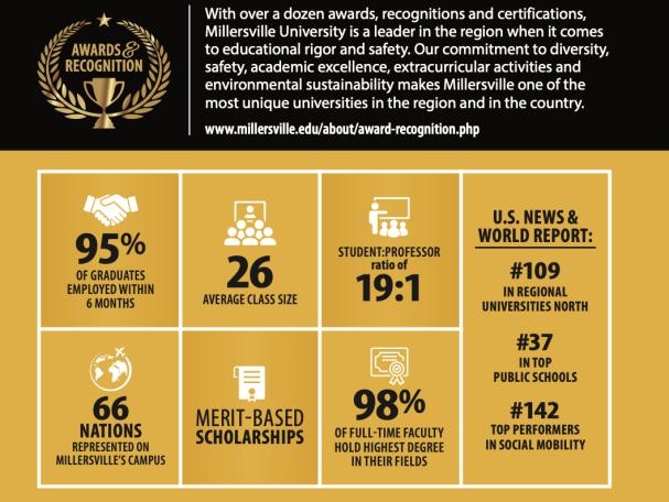 米勒斯维尔大学通过了美国中部各州高等教育委员会(MSCHE)的认证,这是美国大学认证的最高标准,学位将得到全球认可