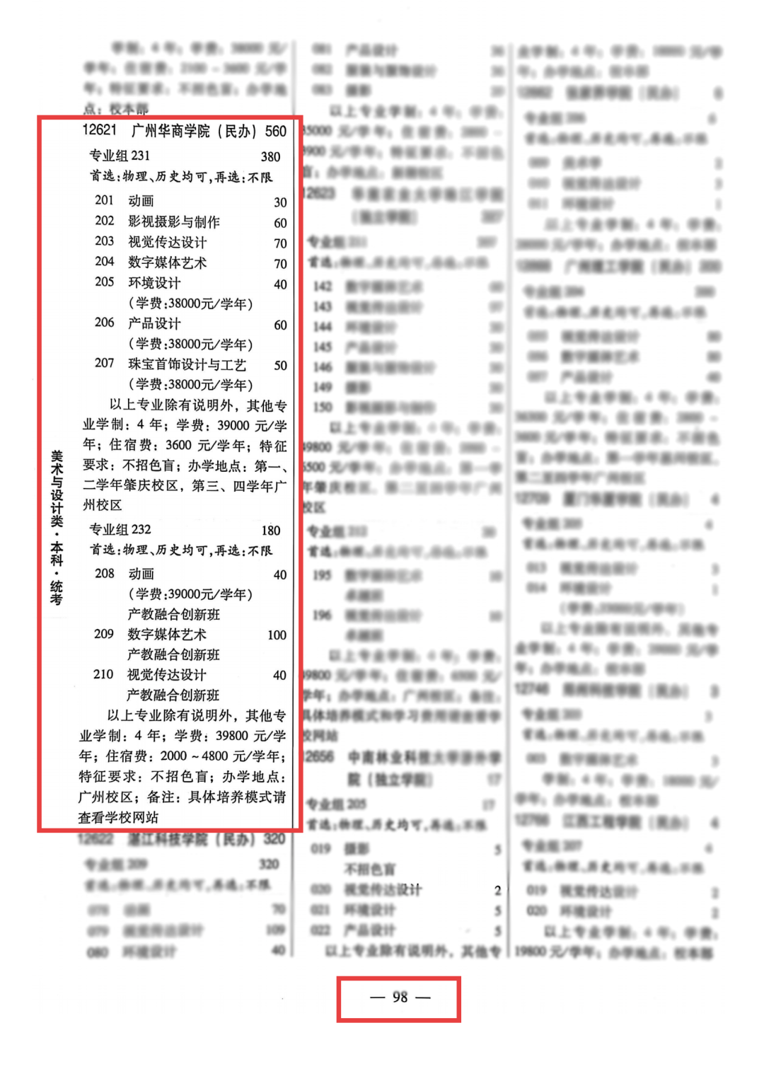 美术与设计专业请参阅:《广东省2025年普通高等学校招生专业目录》(体育艺术版)第98页