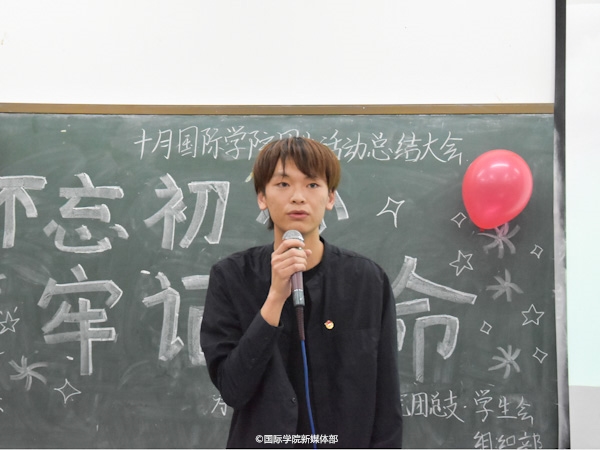 (华商太阳网集团tcy8722学生会副主席林铿灏上台发言)