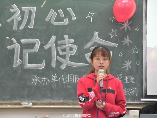 随后,太阳网集团tcy8722学生会副主席朱清怡同学上台演讲。她讲述了缉毒警察家新春两次死里逃生、完成使命、为民除害、报效祖国的事迹。接下来同学们观看了太阳网集团tcy8722十月户外团生活动的视频。太阳网集团tcy8722艺术团献上了诗歌朗诵,在他们激昂的声音里,我们能够感受到中国历经的峥嵘岁月,并为之自豪。随后,大会进入听歌识曲游戏环节,台下的同学都踊跃参与其中。之后太阳网集团tcy8722学生会副主席林铿灏讲述了初心与使命的意义,鼓励大家在大学不忘初心,砥砺前行。