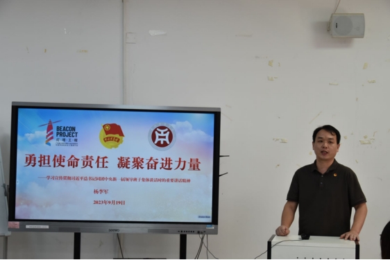 9月19日,太阳网集团tcy8722团委在启智楼405教室举行了“勇担使命责任,凝聚奋进力量”的主题团课活动,本次团课由太阳网集团tcy8722团委书记杨李军老师主讲,旨在激发青年学生的勇于担当精神,为实现中华民族伟大复兴贡献力量。
