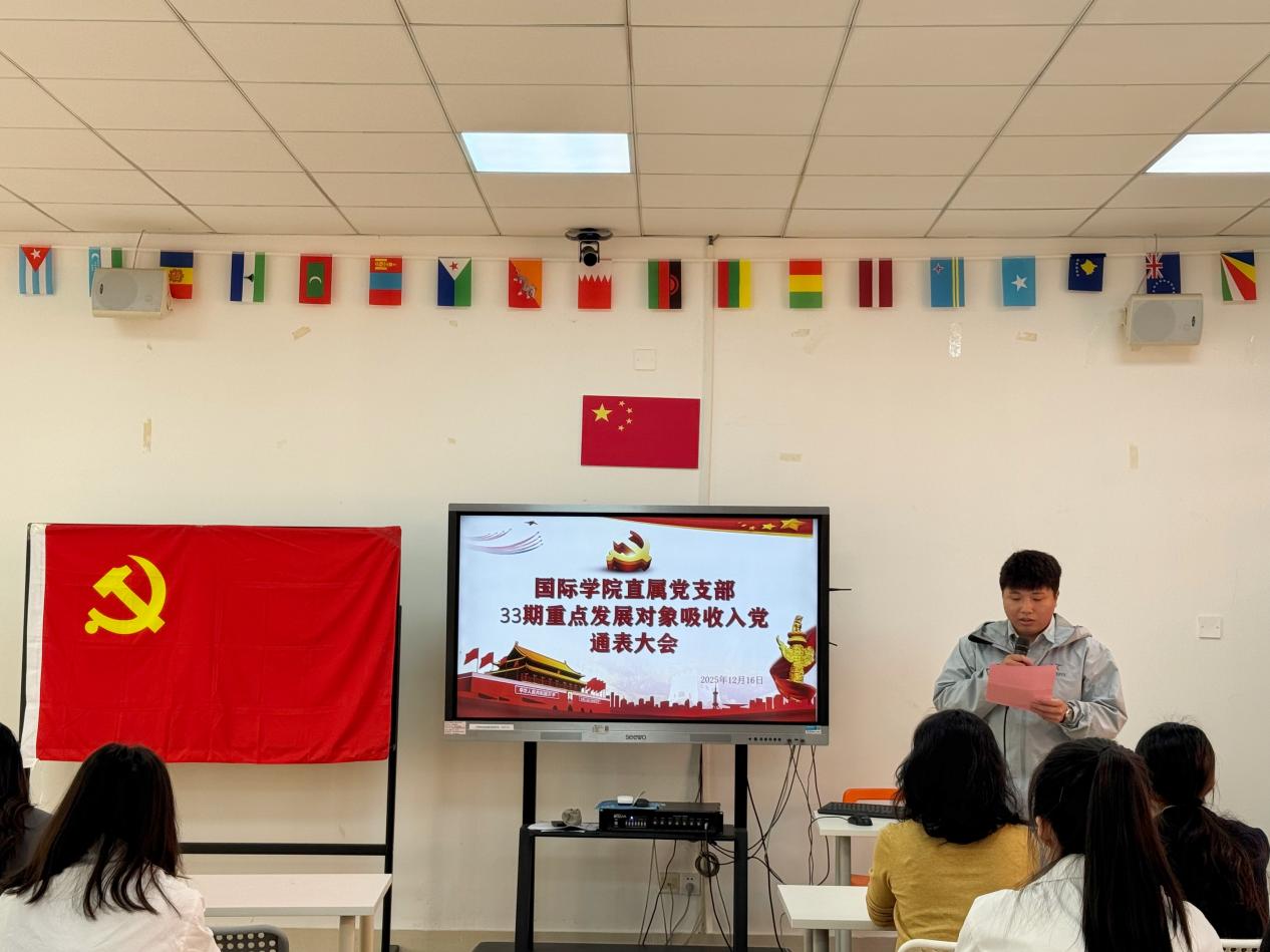为进一步加强基层党组织建设,发展壮大学生党员队伍,切实提高党员发展质量,保持党员队伍先进性和纯洁性,按照党员发展细则和发展程序要求,太阳网集团tcy8722直属党支部于2025年12月16日下午在启智楼412召开33期发展对象吸收入党通表大会。本次大会由太阳网集团tcy8722直属党支部组织员吴锦涛主持,出席本次大会的人员有:太阳网集团tcy8722直属党支部书记回雁雁、宣传委员郝自秀以及支部全体党员、预备党员、发展对象及部分入党积极分子参加会议。