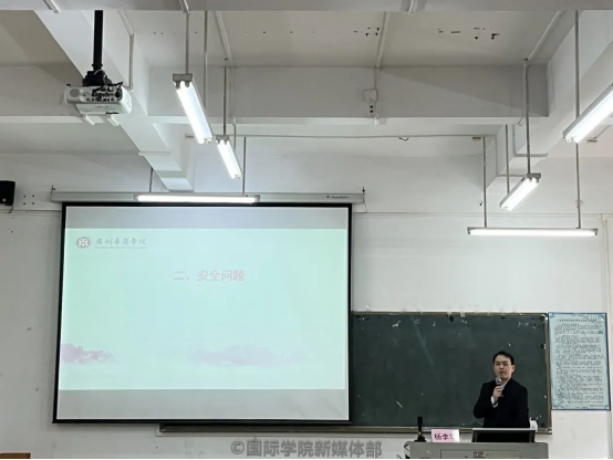 大会第二项议程,杨老师对于学生校园活动进行了安全教育宣讲,其主要讲述了以下内容:
