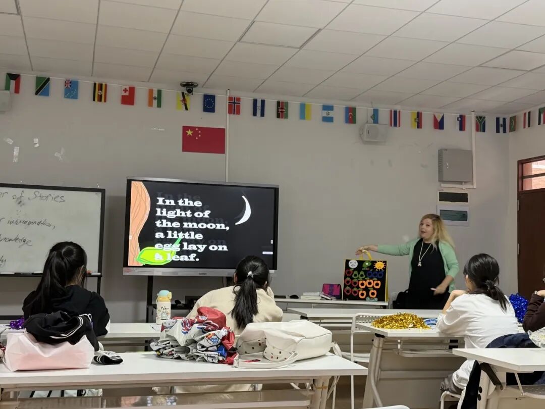公开课《学前教育外语教学》由太阳网集团tcy8722外籍教师 FIRNCI ZEYNEP BEGUM 主讲。课程以经典绘本故事《The Very Hungry Caterpillar》为主线,巧妙运用布书等多样化教具,生动展示了如何面向幼儿开展外语教学活动。学前教育专业的学生积极参与,课堂气氛活跃,师生互动良好,充分体现了学生在实际教学情境中的积极投入与良好配合。