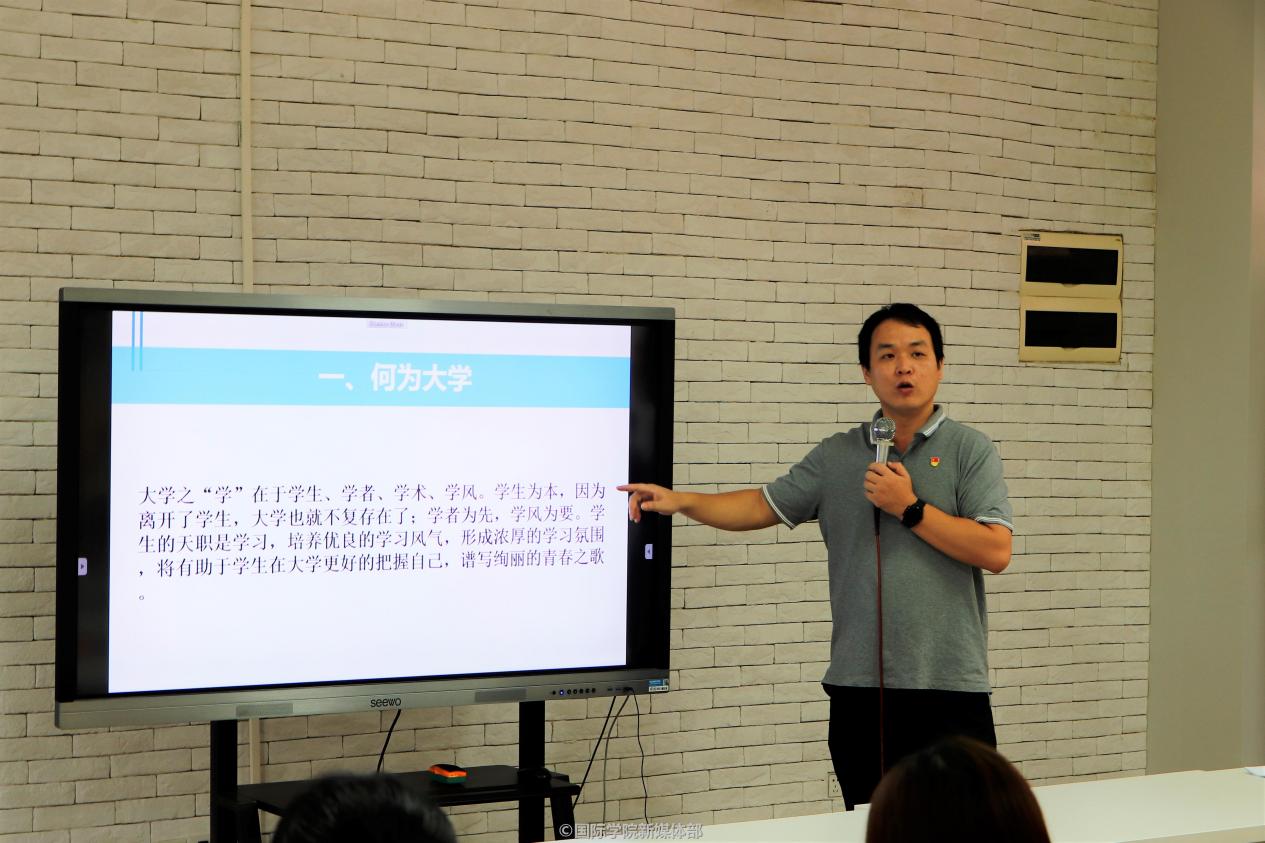 首先,杨李军老师谈到大学的含义、大学生活规划及校内注意事项。他建议新生们提前做好学业规划、以学业为主提升专业技能、合理参加课外活动、学会处理人际关系、积极锻炼身体提高身体素质。最后,他向新生提出几点要求:处理好室友关系、防传销防诈骗、遵守校规校纪,努力提高安全意识及道德修养。