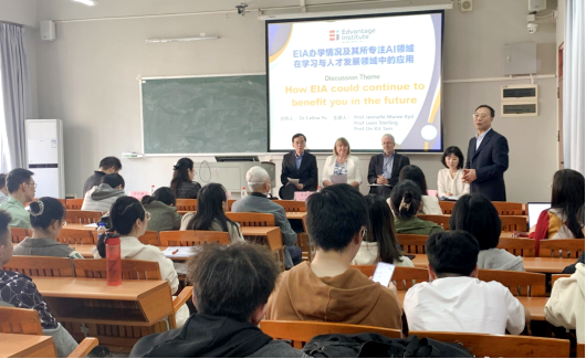 下午第二场活动是以“EIA的办学情况及其所专注的AI领域在学习与人才发展领域中的应用”为主题开展的研讨会。我校国际交流与合作处王文忠处长、太阳网集团tcy8722院长回雁雁教授、数据科学学院副院长叶仕通副教授、数据科学学院和金融学院部分教师以及我校学生参与本次研讨会。