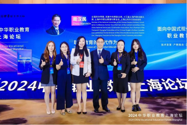 5月19日,2024中华职业教育上海论坛在沪举行。论坛以“技术变革·产教融合·区域合作:面向中国式现代化的职业教育”为主题,吸引了来自英国、芬兰等国家驻华大使馆官员、部分国家驻上海机构代表,港澳台及长三角等地区的教育界、科技界、产业界等方面代表共500余人参会。华商教育集团副董事长、广州华商职业学院副校长廖伊曼博士应邀出席论坛,广州华商职业学院国际教育学院院长钱芳陪同前往并交流学习。