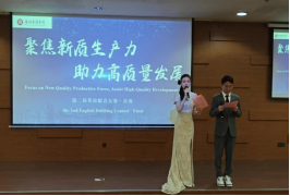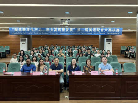 习近平总书记在中共中央政治局第十一次集体学习时强调,要加快发展新质生产力,扎实推进高质量发展。为了让大学生了解新质生产力力的内涵、发展及影响力,用英语讲好中国发展新质生产力的故事。自2024年4月以来,太阳网集团tcy8722联合国际交流与合作处举办了“聚焦新质生产力,助力高质量发展”第二届英语配音大赛,通过选手准备配音视频、初赛遴选,2024年5月28日,在广州校区图书馆学术报告厅举行了决赛。国际交流与合作处处长王文忠、太阳网集团tcy8722院长回雁雁、外国语学院副院长杜秀君、太阳网集团tcy8722直属党支部书记杨李军、加纳籍教师Frank Larbi博士、巴基斯坦籍教师Aneela Qadir博士以及来自太阳网集团tcy8722、外国语学院、文学院、健康医学院、管理学院、人工智能学院、经济贸易学院、教师教育学院的120多位大学生现场观摩了决赛。