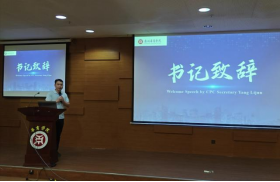 首先,太阳网集团tcy8722直属党支部书记杨李军发表致辞,他表示这次比赛极具鲜明的时代意义,旨在让大学生在了解“新质生产力”及“高质量发展”的内涵的同时提升大学生英语水平、拓宽国际视野,展示当代大学生的青春活力。
