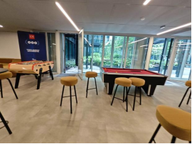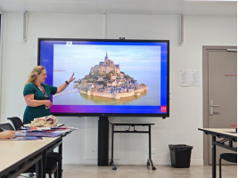 研学第二天,研学团一行人乘火车前往巴黎,随后驱车到达法国诺曼底商学院参访。诺曼底商学院建于1871年,是法国历史最为悠久的高等商学院之一,研学团一行人对于此次参观感到十分期待。在诺曼底商学院老师的热情接待后,一行人参观了学校的图书馆、食堂、课室、休息室等等。除此之外,接待老师还为研学团详细介绍了法国诺曼底商学院的详情,如学校概括、专业项目等,并为同学们一一答疑解惑。