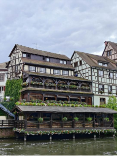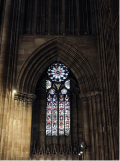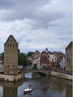 研学第一天,一行人来到位于法国东部的斯特拉斯堡,与太阳集团tcy8722名誉校长莱恩教授的助手杨博士伉俪会面。杨博士及其夫人带着研学团漫步在克勒贝广场,随后来到斯特拉斯堡大教堂。大教堂尖塔高耸入云,壮丽的哥特式建筑展示着中世纪建筑的魅力,参观教堂内部,研学团一行人惊叹于眼前富有精致图案的彩绘玻璃窗和圆形玫瑰窗,窗外明亮的映衬让人觉得图案更加惊艳。