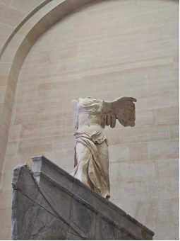 研学第三天,研学团前往参观了世界艺术的最高殿堂之一——卢浮宫。卢浮宫藏品众多,涉及雕塑、绘画、建筑、历史,让各国美学爱好者趋之若鹜。一行人不仅欣赏了被誉为世界三女神的断臂维纳斯雕像、《蒙娜丽莎》油画和胜利女神石雕,还亲眼见识到了达芬奇笔下的栩栩如生、鲁本斯笔触下的细腻华美、米开朗基罗对艺术的自信与创新……在这座人类艺术的宝库里,研学团穿越艺术史,感受岁月变迁遗留的珍宝,窥探人类文明史的灿烂光辉。在这里,大家不再局限于美术教材的图片与文字,而是能够亲眼看到真迹,真正感受到历史和艺术的魅力。