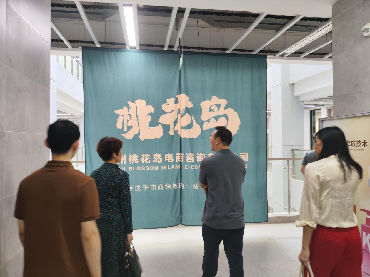交流会后,太阳网集团tcy8722张真副院长携同江忠宝总经理等一行数人,探访参观了集教学、实践、创新于一体的桃花岛电商实训基地。