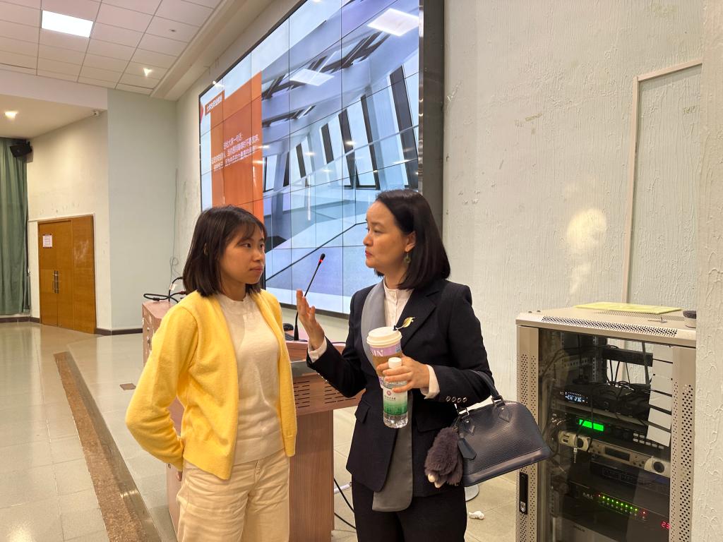 回雁雁院长为邹女士颁发了聘书,她表示邹女士以丰富的职场经验和深厚的专业知识,从就业环境分析、如何规划职业生涯以及如何制作吸引HR的简历几个方面做了详细地阐述。她强调,学子们在分析自身优势时,也不要忽略学校给大家提供的机会,如选拔优秀学子到新加坡参加英语集训等,希望同学们能够充分利用大学四年以及学校给大家搭建的平台,夯实专业基础、提高英语水平、增强跨文化交流能力,为未来就业打下坚实基础。