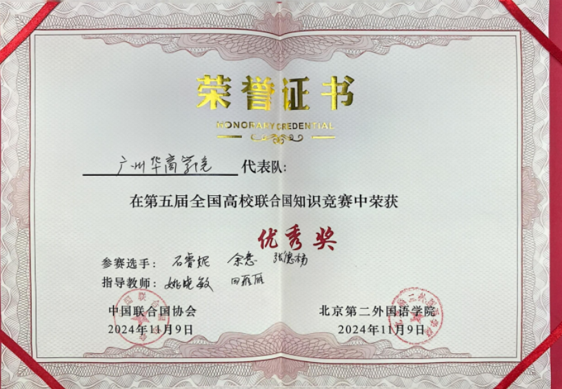 参加全国高校联合国知识竞赛获优秀奖