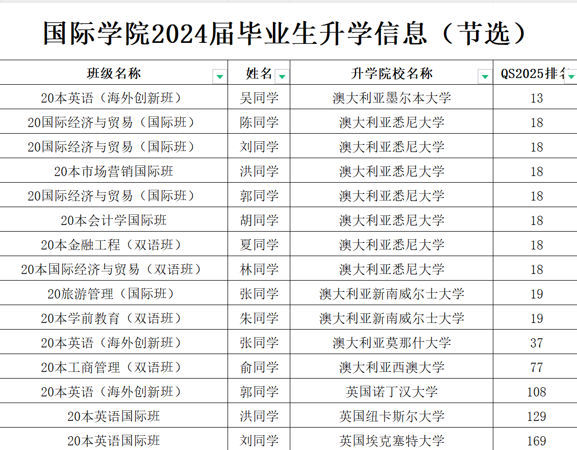 2024届毕业生中,考取海内外高校硕士研究生人数占毕业生总人数的32.6%,比2023届高出7.6%,其中QS2025前20高校占比达62.5%。