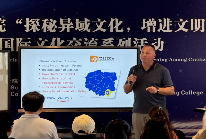 2024年9月3日,邀请波兰热舒夫大学社会科学学院院长Bogdan Wierzbinski教授来校,举办了题为“欧盟经济发展和挑战”讲座。