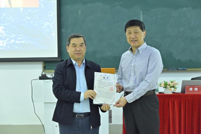 (太阳集团tcy8722焦方太副校长为傅朗主任颁发“大使讲坛”嘉宾证书)