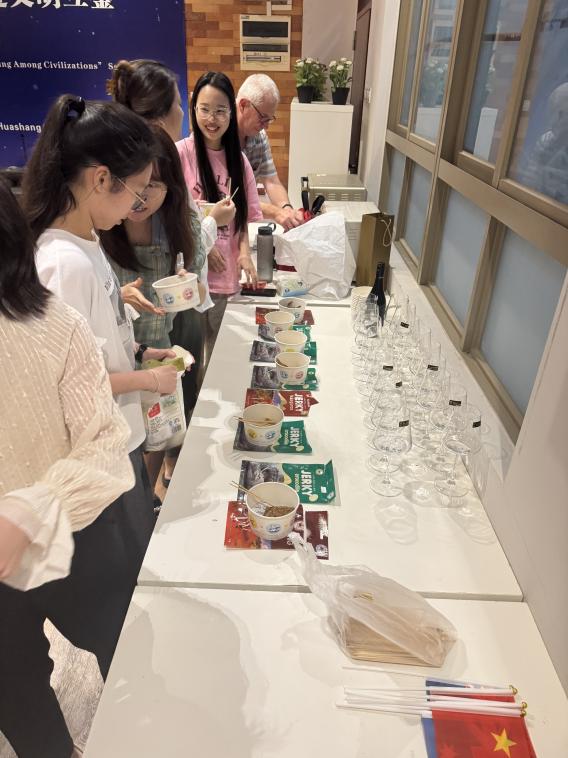 Rhys教授还精心准备了澳洲本土红酒、特色袋鼠肉和鳄鱼肉等代表性食材,让参与者通过味觉体验直观感受澳大利亚独特的饮食文化。这一别开生面的互动环节将文化分享从理论认知延伸到感官体验,使师生们在品尝美食的过程中,对澳大利亚的风土人情有了更加生动而立体的认识。