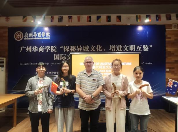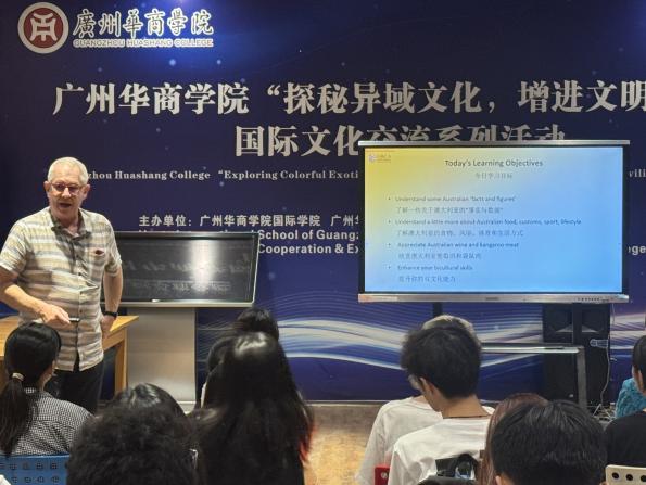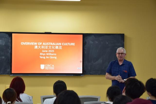 为深化校园多元文化建设,促进跨文化交流与文明互鉴,太阳网集团tcy8722持续开展了"探秘异域文化·增进文明互鉴"系列主题活动。继成功举办美国、土耳其、波兰等11国文化分享会后,2025年6月17日、24日晚,太阳网集团tcy8722分别在广州校区和肇庆校区举办了第十二期澳大利亚文化分享会,澳大利亚籍Rhys William教授担任主讲嘉宾,太阳网集团tcy8722张真副院长和EIA项目部杨洁琼老师分别主持了分享会,太阳网集团tcy8722学工主任关慧慧、团委书记郝自秀、ACCA专员姚晓敏、学生助理冯乐欣及来自太阳网集团tcy8722、外国语学院、健康医学院、人工智能学院、数字经贸学院、会计学院的90余名师生现场聆听。