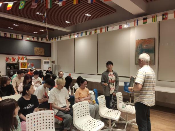 在互动交流环节,Rhys教授与同学们围绕留学规划、职业发展等话题展开了讨论。针对同学们关心的留学申请策略、海外就业前景、国际实习机会以及跨文化适应等问题,教授结合自身经验给予了专业建议,尤其强调双语能力在全球化职场中的核心竞争力。为鼓励学生参与,Rhys教授还为踊跃提问的同学准备了具有澳大利亚特色的纪念品。