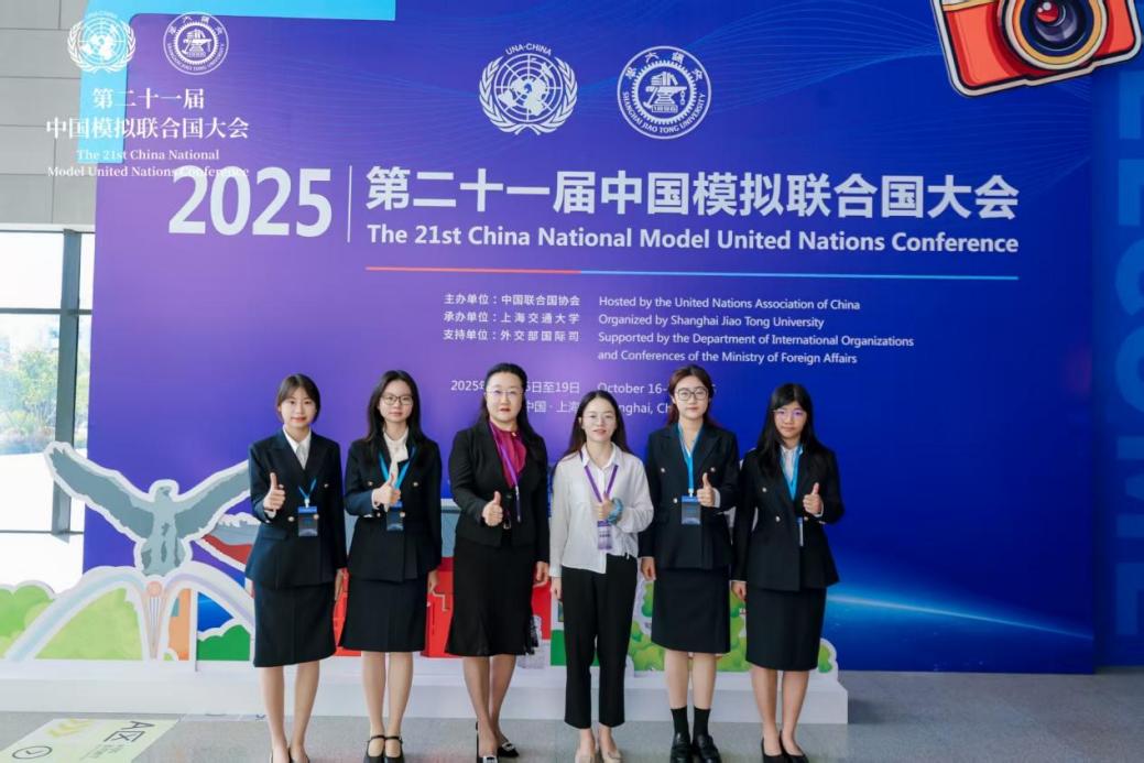 为提升太阳网集团tcy8722学子参与全球治理的能力,培养具备国际视野、人类命运共同体情怀以及国际组织胜任力的新时代青年,学院持续拓展国际化育人平台,积极组织学生参加中国联合国协会主办的各类活动。在2024年首次参与第二十届中国模拟联合国大会基础上,2025年10月16日至19日,经过面向全国百余所高校学生的学术测试选拔,太阳网集团tcy87222023级、2024级会计国际班劳雅怡、余意、刘雅文、刘嘉怡等四名同学成功晋级第二十一届中国模拟联合国大会。太阳网集团tcy8722院长回雁雁、辅导员郝自秀担任指导老师,带队前往上海参加了为期四天的会议。