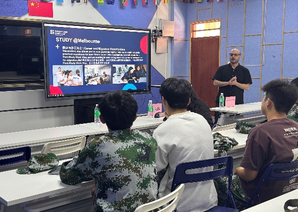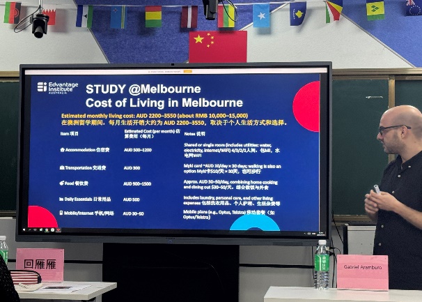 Gabriel Aramburo博士则结合自身从澳大利亚留学生到高校教师的成长经历,向学生生动分享了在澳学习的体验与收获。他还围绕文化适应、勤工俭学、企业实习及生活成本等学生关切的实际问题,提供了务实而详细的建议.