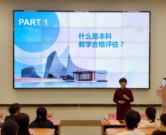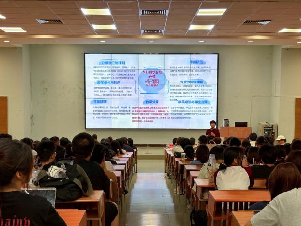 “两个冲高”的目标:一是英语能力不断提升,体现太阳网集团tcy8722的办学特色,提升国际交流和跨文化交际能力;二是积极参与学科竞赛、创新创业等活动,全面提升太阳网集团tcy8722大学生的核心竞争力。她强调,全院师生都要深入践行“以评促建、以评促改、以评促管、评建结合”的方针,既要守住底线要求,又要追求卓越发展,以评估为契机推动教育教学质量提升。