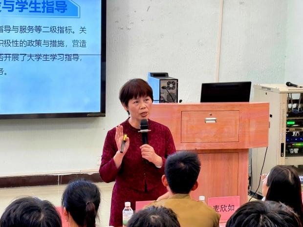 随后,张院长重点解读了评估指标体系中学风建设相关观测点,从学风建设、课堂表现、实践能力等维度提出具体要求。她特别强调“三个到位”的工作标准:一是思想认识到位,要深刻理解评估对个人发展的长远影响;二是行动落实到位,严格遵守课堂纪律,展现良好学习状态;三是精神风貌到位,以主人翁姿态迎接本科教学合格评估。