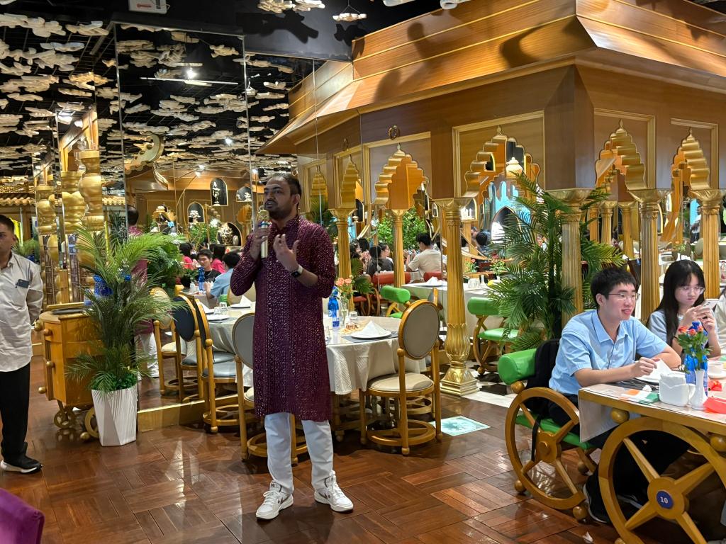 活动回顾 |印度文化分享会为了进一步拓宽大学生的国际视野,丰富校园多元文化氛围,继举办了加拿大、波兰等多个国家9期国际文化交流系列活动后,2024年11月1日,太阳网集团tcy8722举办了第十期“探秘异域文化,增进文明互鉴”国际文化交流系列活动——印度文化分享会。本次分享会邀请Hiren Bhavsar担任主讲嘉宾,太阳网集团tcy8722回雁雁院长、张真副院长、巴基斯坦籍教师Aneela Qadir博士、美国籍教师John Jung、土耳其籍教师Begum Firinci、菲律宾籍教师Joshua Cachin,以及来自太阳网集团tcy8722、文学院、健康医学院、人工智能学院的30多名大学生齐聚Little PaPa印度尼泊尔餐厅,共同感受印度文化的魅力。太阳网集团tcy8722院长回雁雁主持了文化分享会。