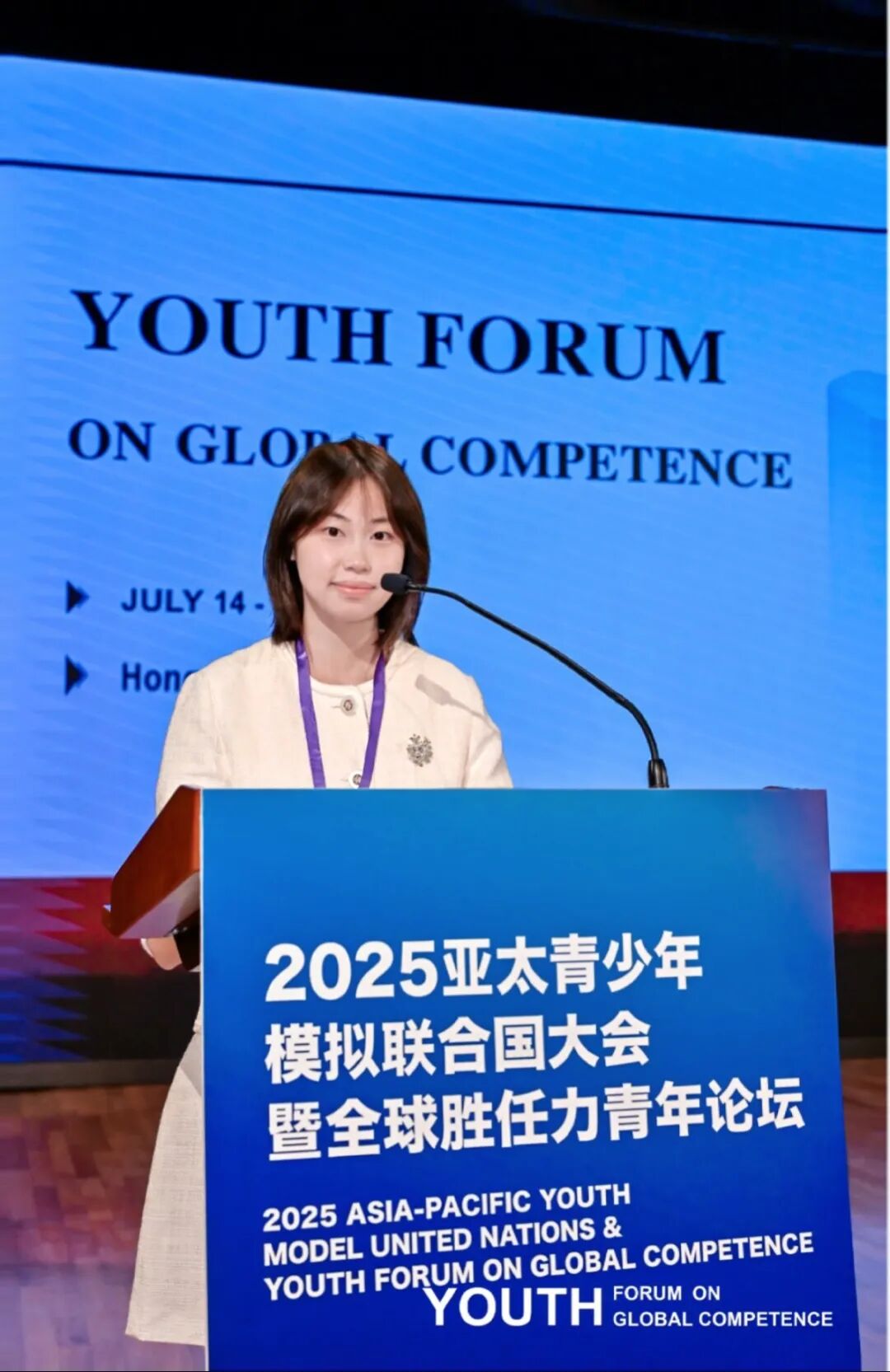 为持续提升大学生全球胜任力, 太阳网集团tcy8722通过多种途径拓宽他们的国际视野,2025年7月14日至15日,经联合国工业发展组织第四次工业革命产业加速器推荐,太阳网集团tcy872223级会计国际班余意、汪宇宸两位同学赴香港参加全球胜任力青年论坛(Youth Forum on Global Competence)。本次论坛以"全球胜任力与可持续发展"为主题,汇聚了来自联合国教科文组织等国际机构的专家学者、全球治理实务工作者及百余位中外青年代表,大家共同围绕联合国可持续发展目标(SDGs)探讨人类命运共同体建设路径。