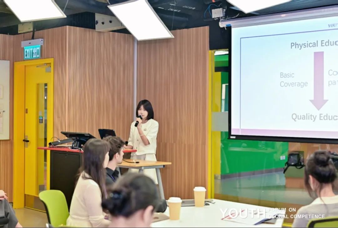 余意同学以"The Impact of Physical Education on Quality Education"为题发表全英文演讲,系统阐述了体育教育对优质教育的基石作用。她先阐述了全面发展是教育核心,体育教育是根本和保障的观点;再通过引用官方数据揭示全球青少年健康存在的普遍问题,强调世界卫生组织将体育教育定位为基本权利的重要性;最后,通过解读"体育素养"培养体系和"健康生活"的全球倡议,论证了体育教育作为优质教育重要支柱的关键地位。