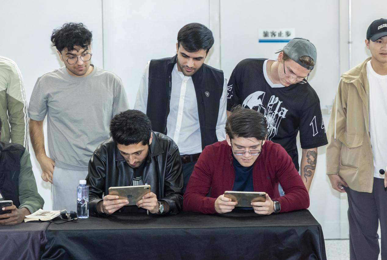 在机器人竞赛环节,留学生们通过FPV第一视角沉浸式参与机甲大师对抗赛,亲身体验了全向移动、精准射击与团队协作的科技竞技乐趣。