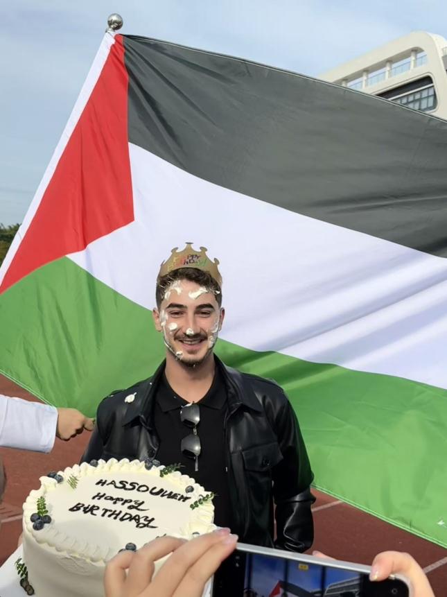 在运动会开幕式当天,恰逢巴勒斯坦籍留学生HASSOUNEH MOHAMMEDALFATEH BASSEL KAZEM的生日。现场师生们为他准备了生日蛋糕,并齐声送上祝福。这温情的一幕,让身在异乡的他感受到如家般的暖意,也成为“国际一家亲”融洽氛围的生动写照。HASSOUNEH感动地说:“感谢学院老师与同学们的用心与关怀,这是我度过最特别、最温暖的生日。”
