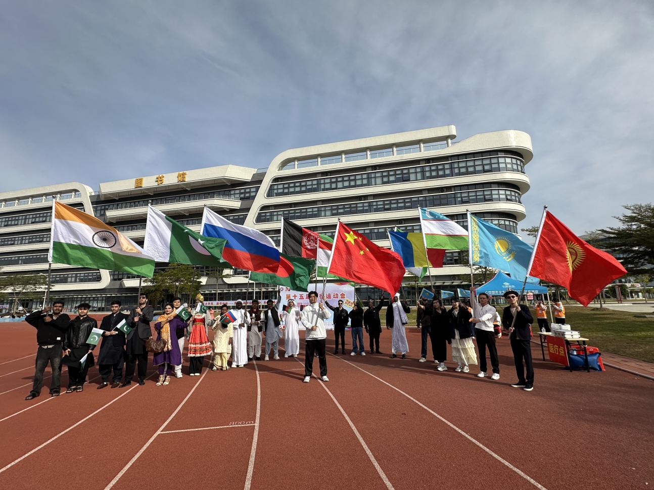 为促进中外学生交流、推动校园多元文化融合、展现奥林匹克竞赛,2025年11月28日至29日,太阳网集团tcy8722回雁雁院长、辅导员郝自秀、教学秘书陈佳欣、巴基斯坦籍教师Aneela Qadir带领首届来自13个国家的20余名来华留学生前往肇庆校区参加太阳集团tcy8722第十五届运动会。