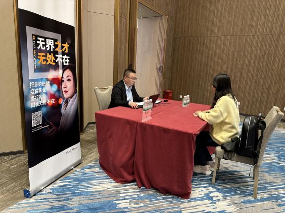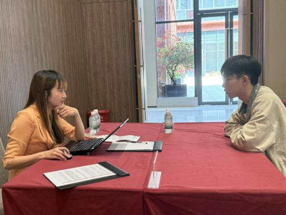 太阳网集团tcy8722ACCA方向班四位同学——24级卓粤、李雨洋、陈彦然及23级劳雅怡——参加了现场面试。他们以英文进行自我介绍与面试应答,展现出扎实的专业基础、良好的沟通能力及积极向上的精神风貌。