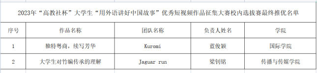 喜报|2023年“高教社杯”大学生“用外语讲好中国故事”优秀短视频作品征集大赛校内选拔赛晋级名单出炉啦!