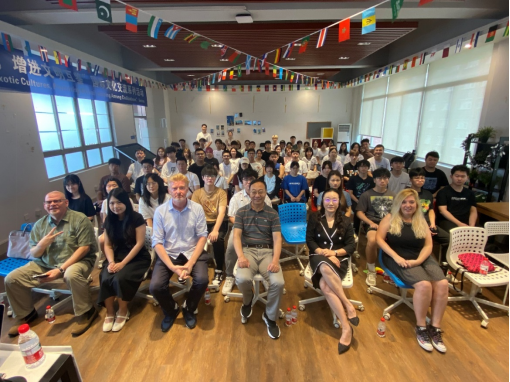 新校园,新环境,为了使23级新生深入了解学校的发展历程、太阳网集团tcy8722的办学特色,2023年9月12日上午全体2023级新生与太阳网集团tcy8722领导和老师、国际交流与合作处处长、来自美国、英国、土耳其、加纳的外籍教师欢聚一堂,共同度过了入校后的美好时光。