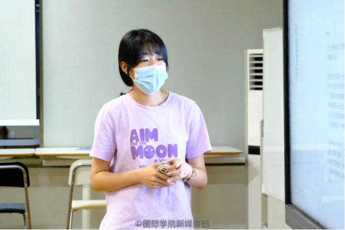 最后,来自2022级会计学国际班的李美静同学分享了张嘉佳的作品《云边有个小卖部》。李同学认为小说中的故事固然精彩,但最精彩的还是云边镇有血有肉的人物,他们对亲情、爱情和友情的坚守是整个故事最打动人心的部分。她希望,同学们在生活中也要像小说中的人物一样,做个有血有肉的人。