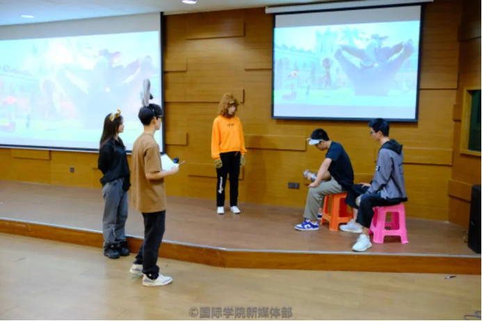 随后,新生们依次上台进行闭营仪式汇报演出。表演形式丰富多样,如:歌曲舞蹈、动画配音、舞台剧等,每组节目的呈现都令人惊喜。同学们充满自信与活力,出色的舞台表现使现场观众印象深刻,意犹未尽。