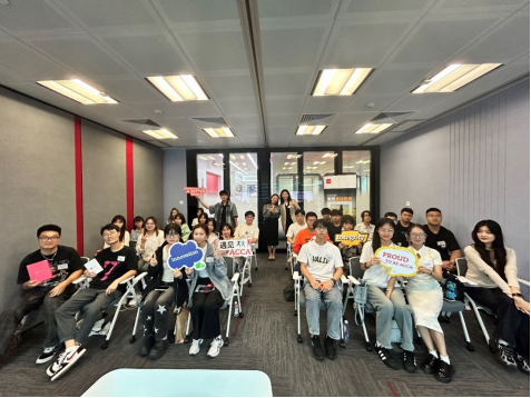 活动伊始,同学们在主题背景板签名合影留念并领取专属名牌,同时收到了一份来自ACCA华南办公室精心准备的纪念品小礼物。