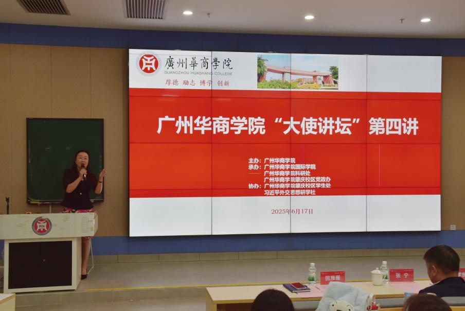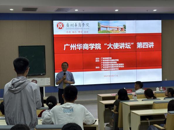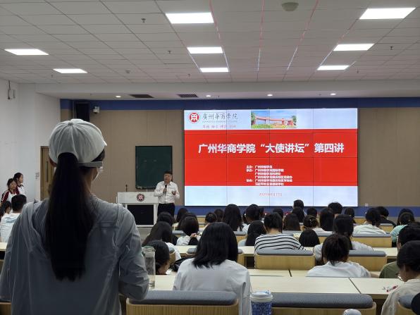 "大使讲坛"系列讲座作为学校第二课堂建设的品牌项目,已产生显著的影响力,广州与肇庆两校区累计参与学生已近千人,该平台不仅有效拓宽了学生的国际视野维度,更通过外交官与学子的深度互动,使"全球胜任力"这一核心素养的培养标准在青年群体中形成广泛认知共识。“