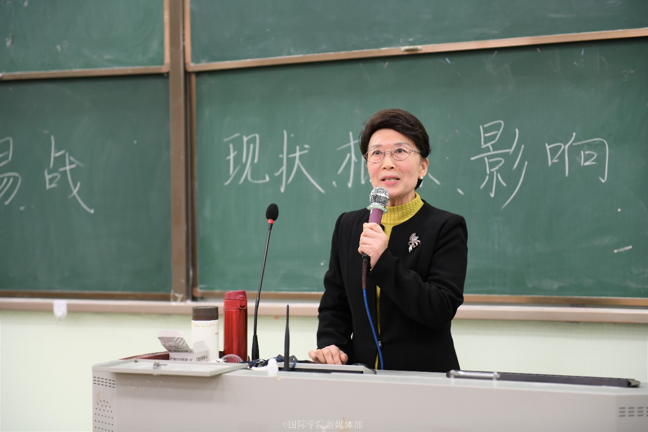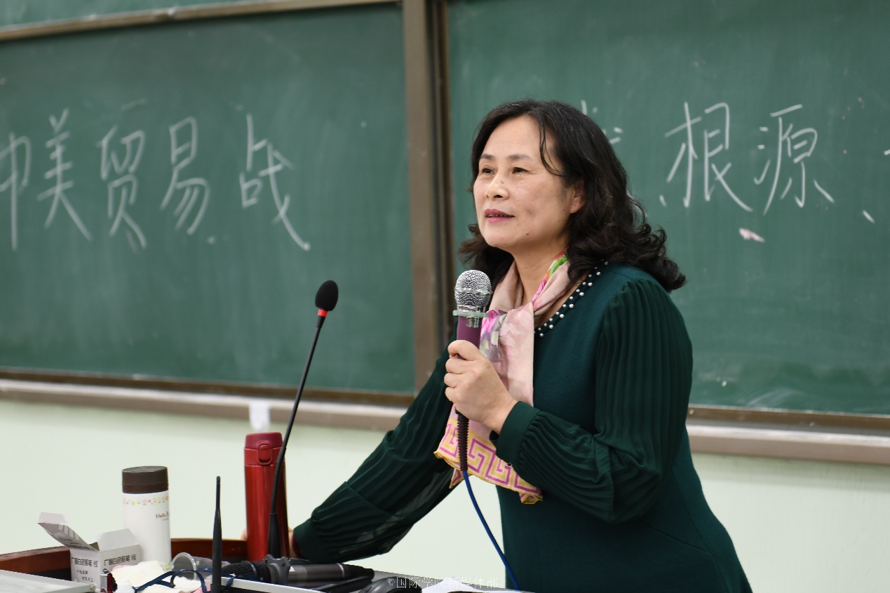 最后,余惠芬院长在讲座的尾声总结道“陈教授基于她渊博的知识,深厚的积淀,丰富的案例以及独特的视角给我们深入浅出地解析了中美贸易战的现状根源及其影响,不仅令在场各位同学都受益匪浅,就连自己也收获颇多,再一次衷心地感谢陈教授给我们带来的精彩演讲。”
