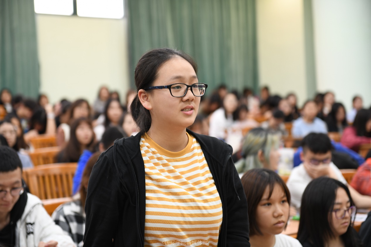 紧接着到了提问环节,同学们积极踊跃地提问,陈教授耐心解答疑惑的同时,还对同学们提出了“身为大学生的我们应当对祖国充满信心,现如今中国日益增强的综合实力足以在国际贸易的市场中站稳脚步。”同学们听完之后深受鼓舞。