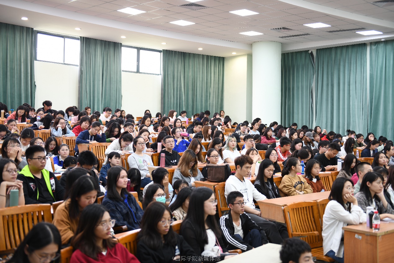 2019年3月26日15:00,由华商太阳网集团tcy8722举办的文化素质系列讲座(六)、暨南大学陈红蕾教授主讲的“中美贸易战:现状、根源、影响”主题讲座在励志楼D308教室举行,此次讲座受到我校广大学子的热烈欢迎,不仅会场座无虚席,就连过道上、讲台两边都挤满了学生。