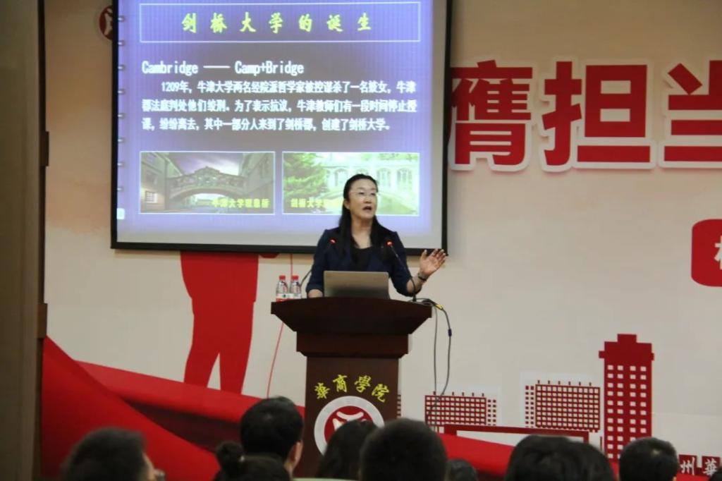 回雁雁院长通过大家非常熟悉的诗人徐志摩的《再别康桥》引发对剑桥牛津历史文化的关注,通过两所大学走出来的杰出人物代表的介绍,阐述了剑桥、牛津两所学校对人类社会发展做出的巨大贡献及深远影响,进而引出了讲座的主题。