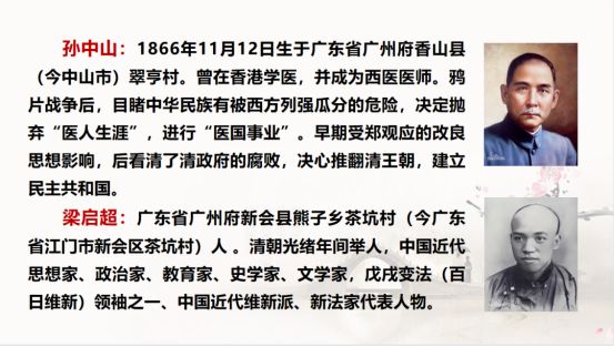 广州的“一口通商”也成为西方进步思想进入中国的窗口,由此,产生了不少在中国近代史上具有较大影响力的杰出领袖、思想家、政治家、外交家和教育家,如伟大的革命先驱孙中山先生、戊戌变法的领袖之一梁启超、中国首任驻美公使陈兰彬、中国现代音乐之父萧友梅、清华大学创始人唐国安等。